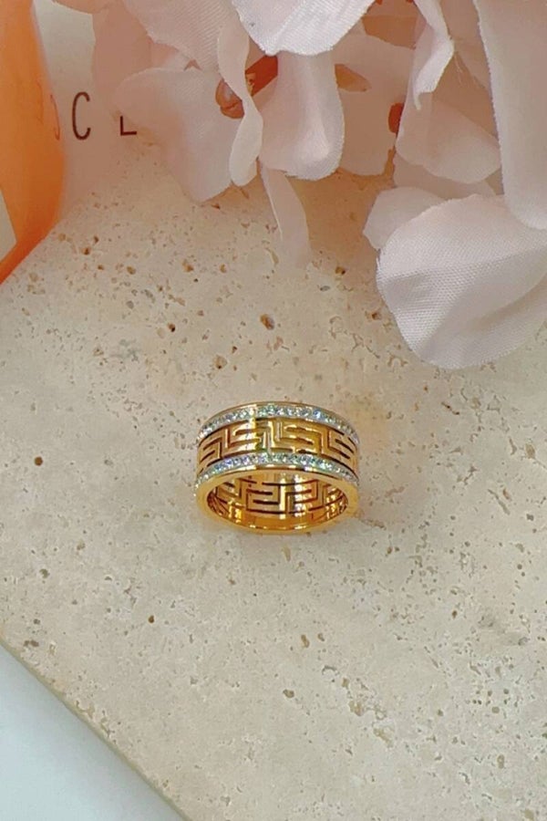 Prachtige ring bewerkt met steentjes aan de randen.